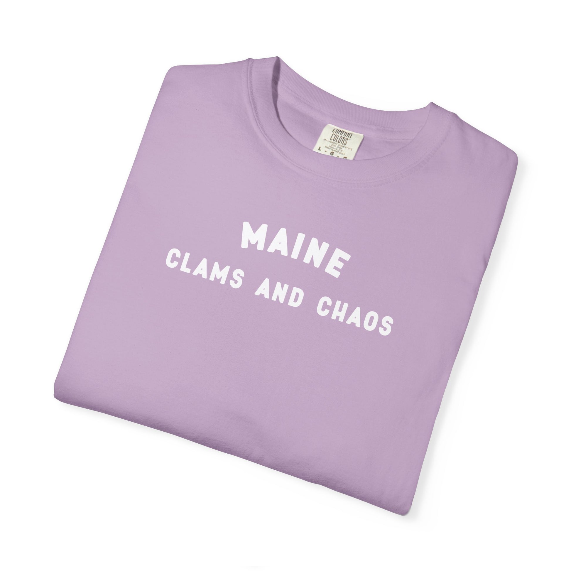 Tags for SEO: Maine t-shirt, political Maine shirt, clams and chaos tee, Comfort Colors 1717, activist shirt Maine, funny Maine shirt, Maineifesto Collection, Maine protest shirt, down east pride, civic-minded apparel