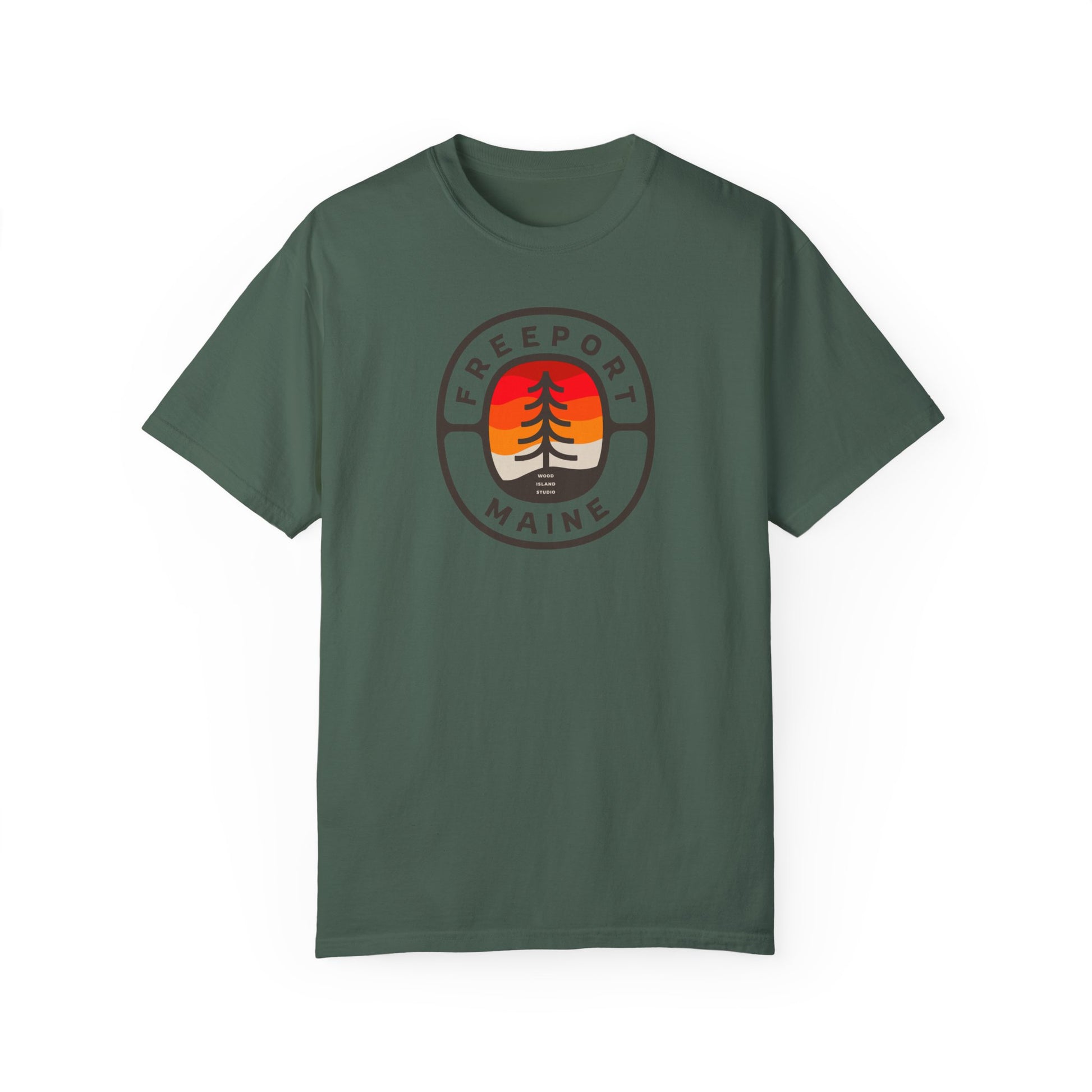 Crafted by Wood Island Studio on super-soft cotton, it’s made for Mainers, travelers, and anyone who finds peace in the pines.