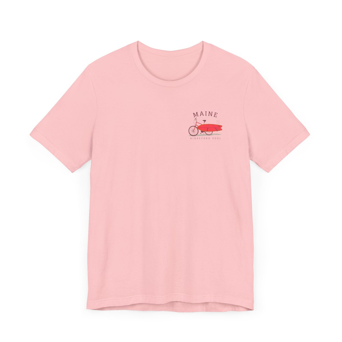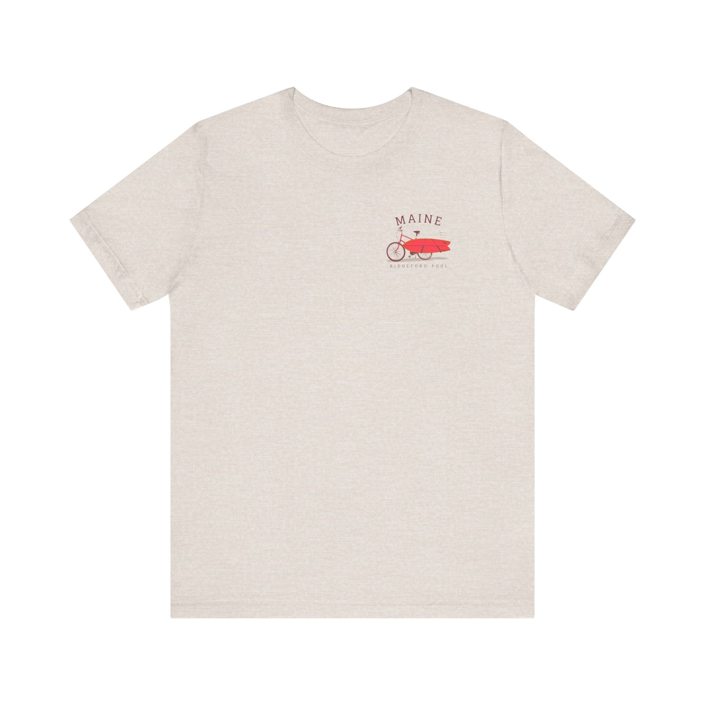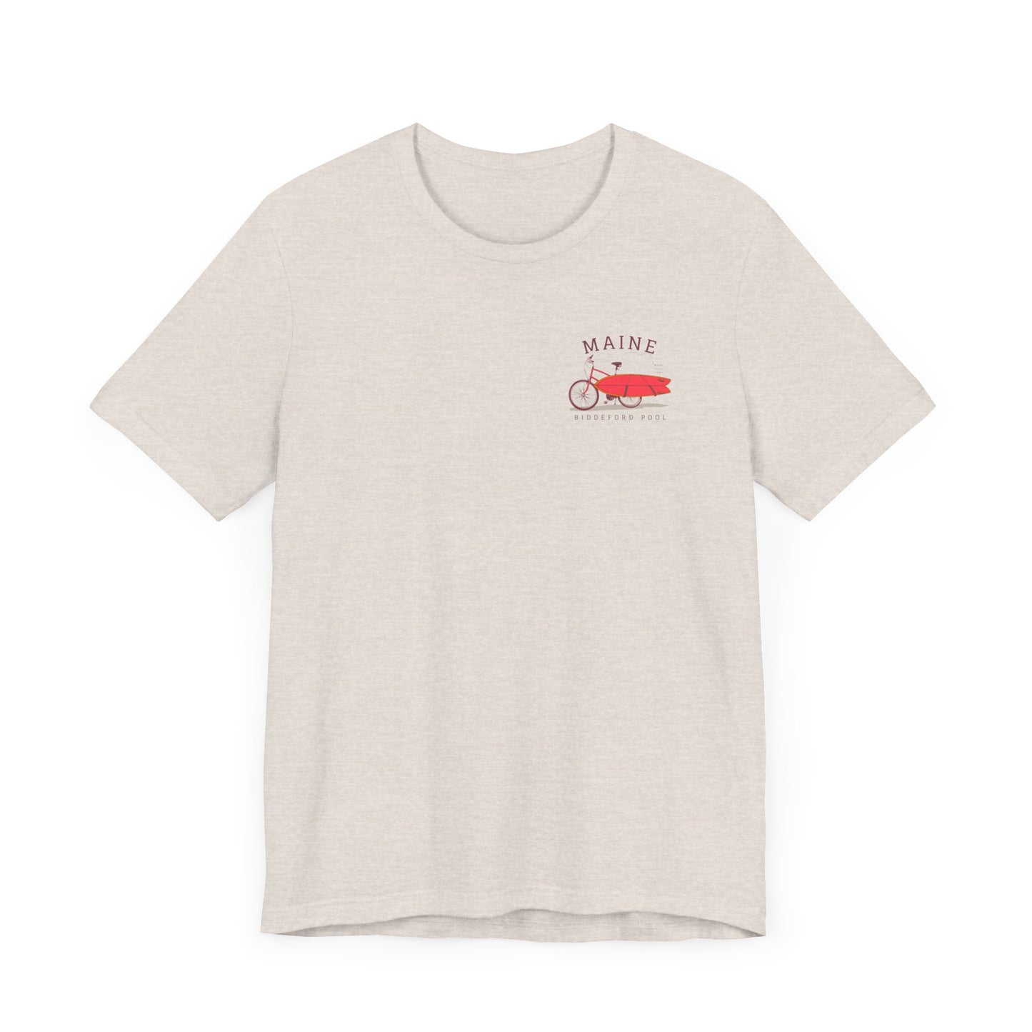 Introducing this stylish Biddeford Pool, Maine Unisex Jersey Short Sleeve Tee, perfect for those who love casual yet trendy wear. Made from 100% Airlume combed and ring-spun cotton, this tee is soft, breathable, and lightweight, making it a go-to choice for both active days and relaxed evenings. The vibrant design featuring a charming bicycle and surfboard gives it a fun, adventurous vibe, ideal for beach outings or summer festivals. It's perfect for anyone who enjoys outdoor activities or has a laid-back lifestyle. Great for gifting during summer holidays, birthdays, or just to brighten someone's day! This tee adds a touch of personality to any outfit, seamlessly blending comfort with style, suitable for all ages and fashion tastes.